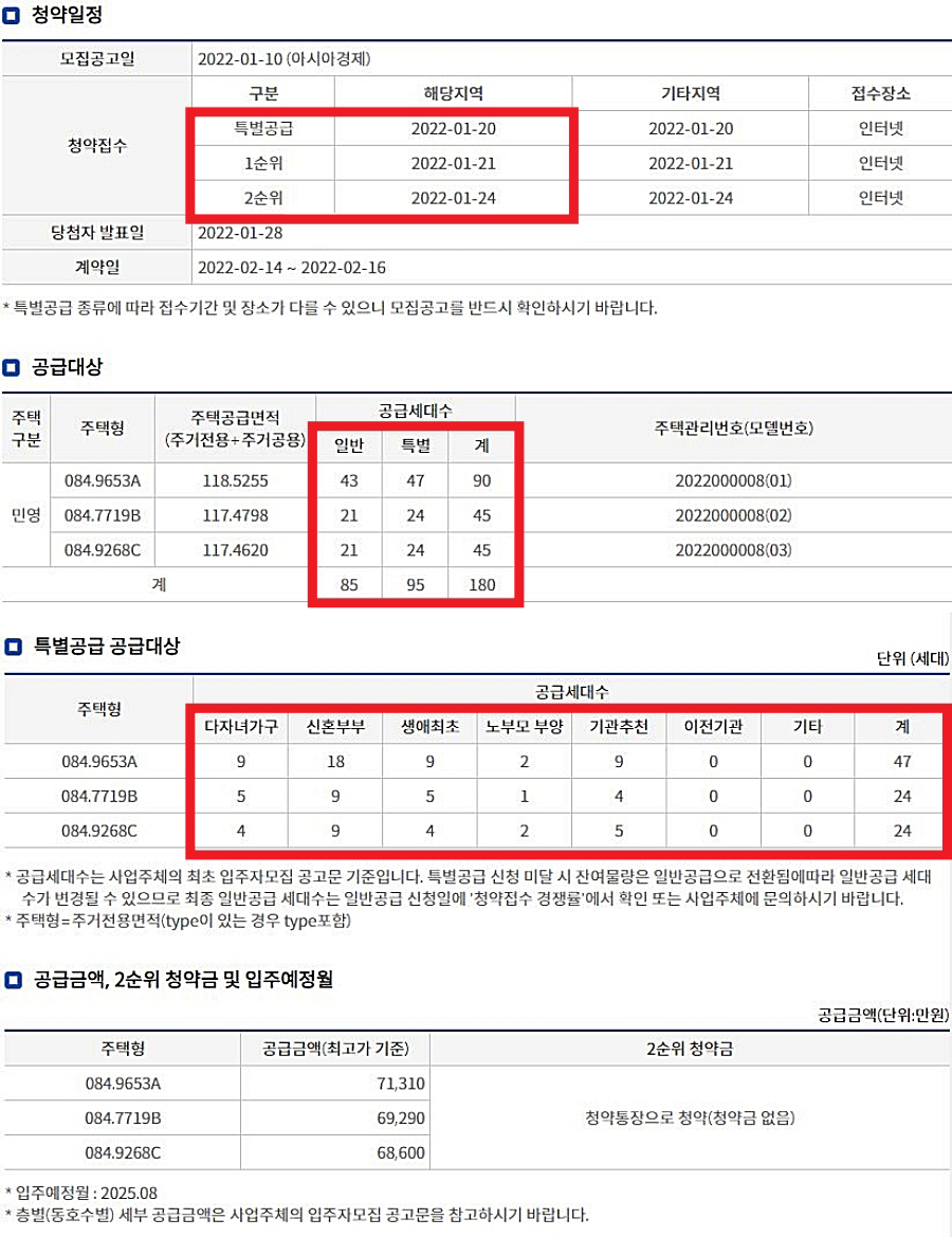 청약기간은 1월 21일부터 26일까지 5일간이다. 주변 입지 조건, 커뮤니티 시설, 학군, 공급내역은 아래 상세 살표보기에서 한눈에 볼 수 있다.