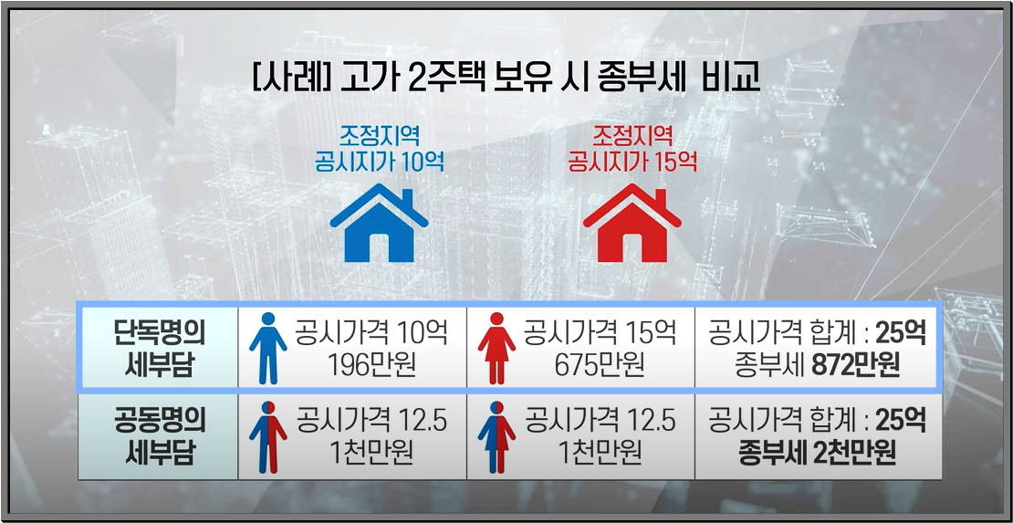 공동명의도 불리한 것이 있다. 다주택자의 경우이다,