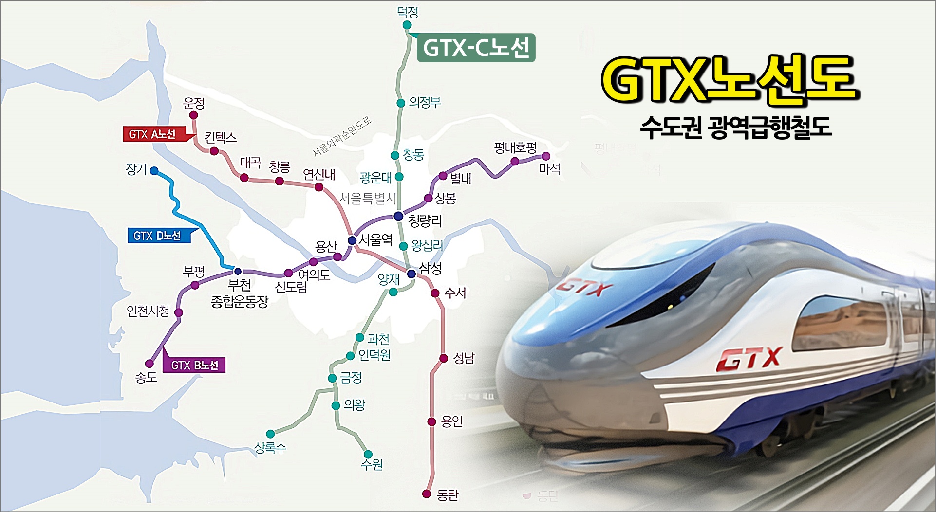 GTX- C노선 실시 협약안에 왕십리, 인덕원, 의왕, 상록수역 등4개 역이 추가로 반영됐다 고 밝혔다. 또한 정부는 인천 송도와 남양주 마석을 잇는 GTX-B 노선에도 3개 역을 추가하는 방안도 검토 중이다.
