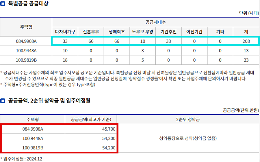 입주예정일이 2024년 12월로 예정되어 있으며 606세대 중 절반이 넘는 일반공급 물량이 362세대로 3월 10일부터 특별공급. 1순위 11일, 2순위 14일에 분양한다.