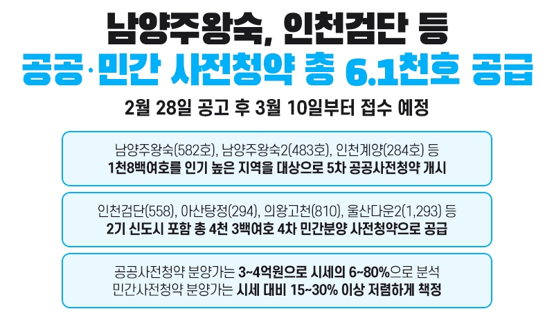국토교통부는 공공 신혼 희망타운 사전청약 1천8백 세대와 4300세대 규모의 민간분양 사전청약 등 총 6100호 규모를 공급한다.