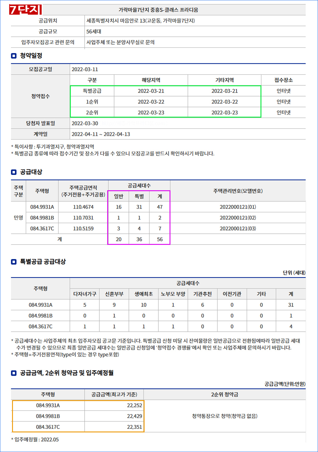 지난 2월 26일 포스팅했던 세종 중흥 S클래스 가락마을 6단지 59m²(25평) 143세대와 7 단지 84m²(33평) 56세대가 드디어 3월 21일 분양된다.
