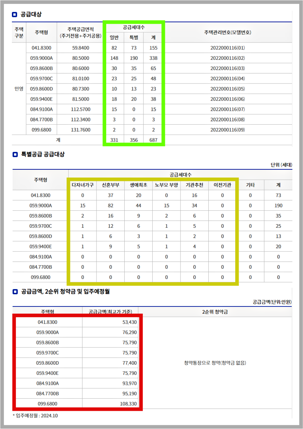 총2736세대중 일반분양은 687세대(41㎡ / 59㎡A·B·C·D·E / 84㎡A·B / 99㎡)이다.