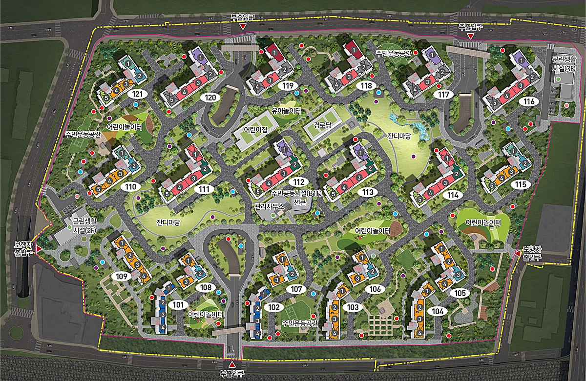 주민들의 생활을 지원하기 위한 생활지원센터가 들어서며 요가 에어로빅 등 피트니스 클럽 외에도 맞벌이 부부가 안심하고 자녀를 맡길 수 있는 어린이집