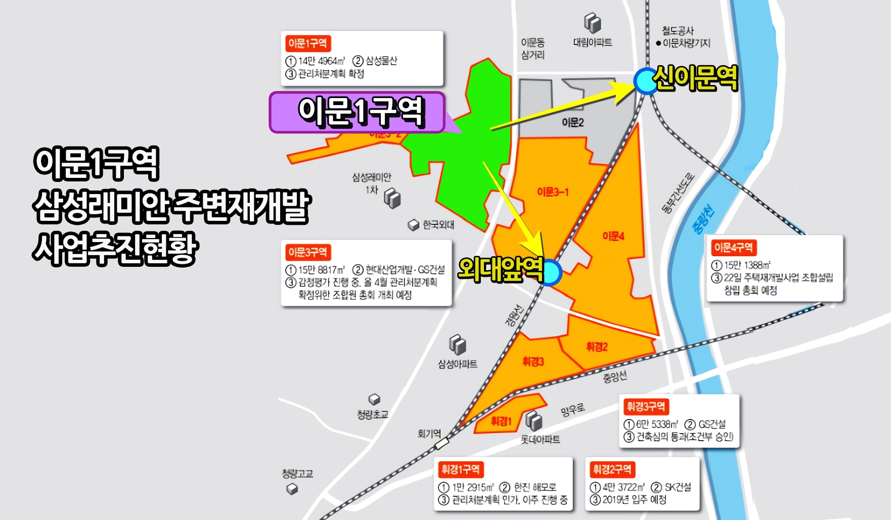 재개발 단지 중에서도 특히 이문1구역은 삼성물산이 단독 시공하는 곳으로 삼성 래미안의 브랜드 인지도가 높아 매우 경쟁이 치열할 것으로 예상된다.