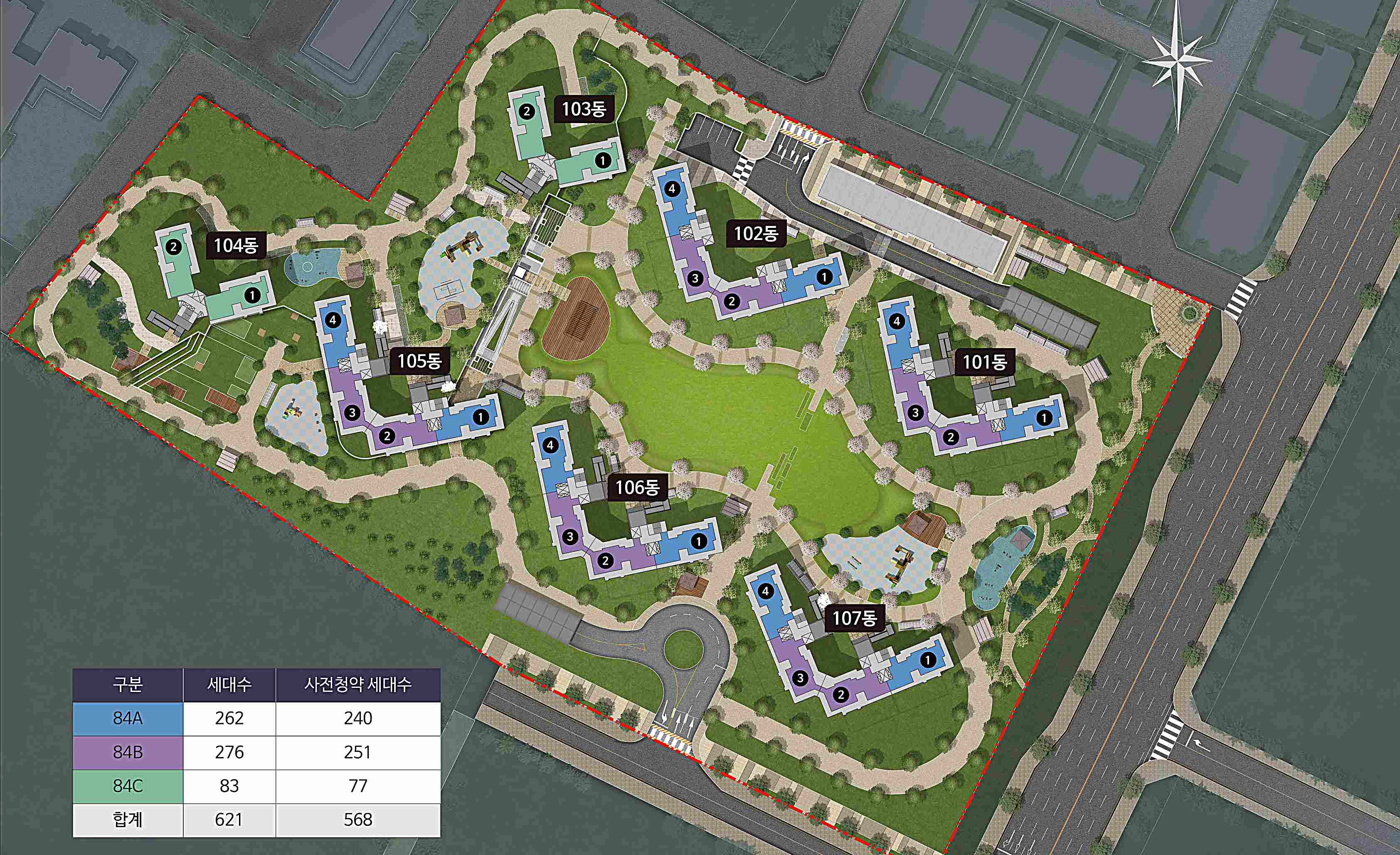 공공주택지구 내 들어서는 아파트로 전세대가 84m² 3가지 타입으로 308세대 중 사전청약 물량이 278세대이다.