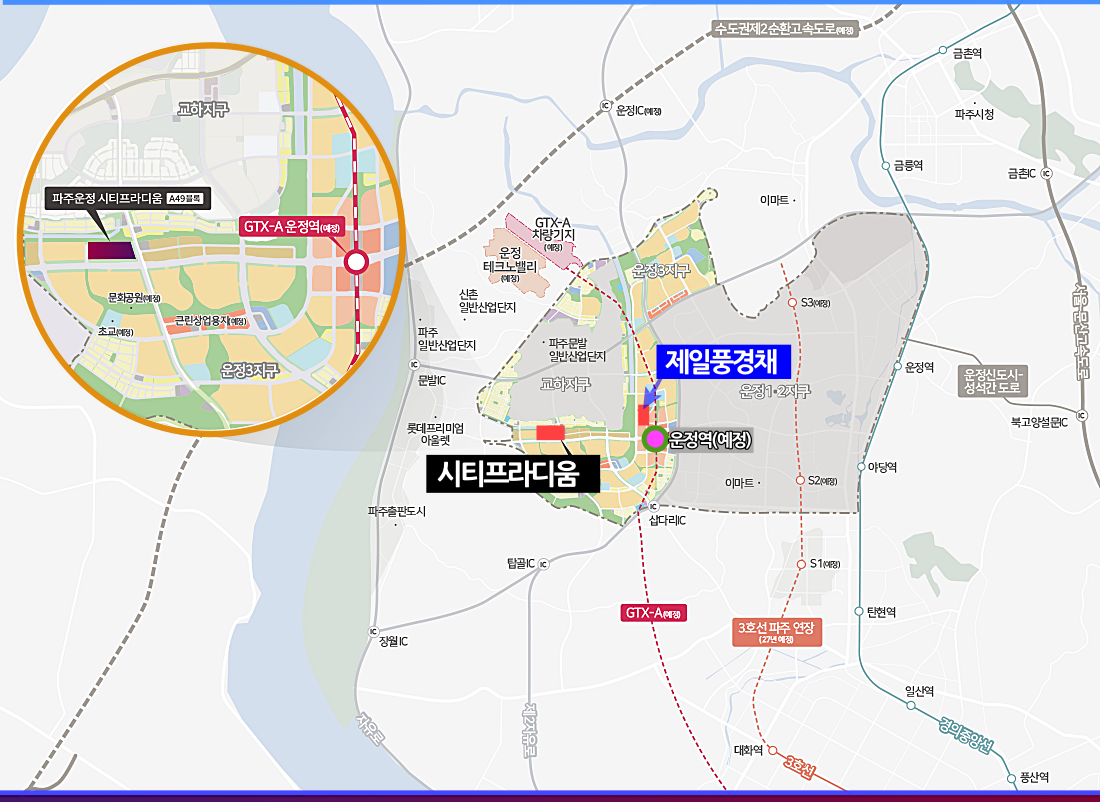 특히 이번에 나오는 파주 운정 A46블록의 제일풍경채와 소개하는 시티 프라디움은 당첨자 발표일이 달라 파주에 주거지를 마련하려는 분들에게는 절호의 찬스이다.