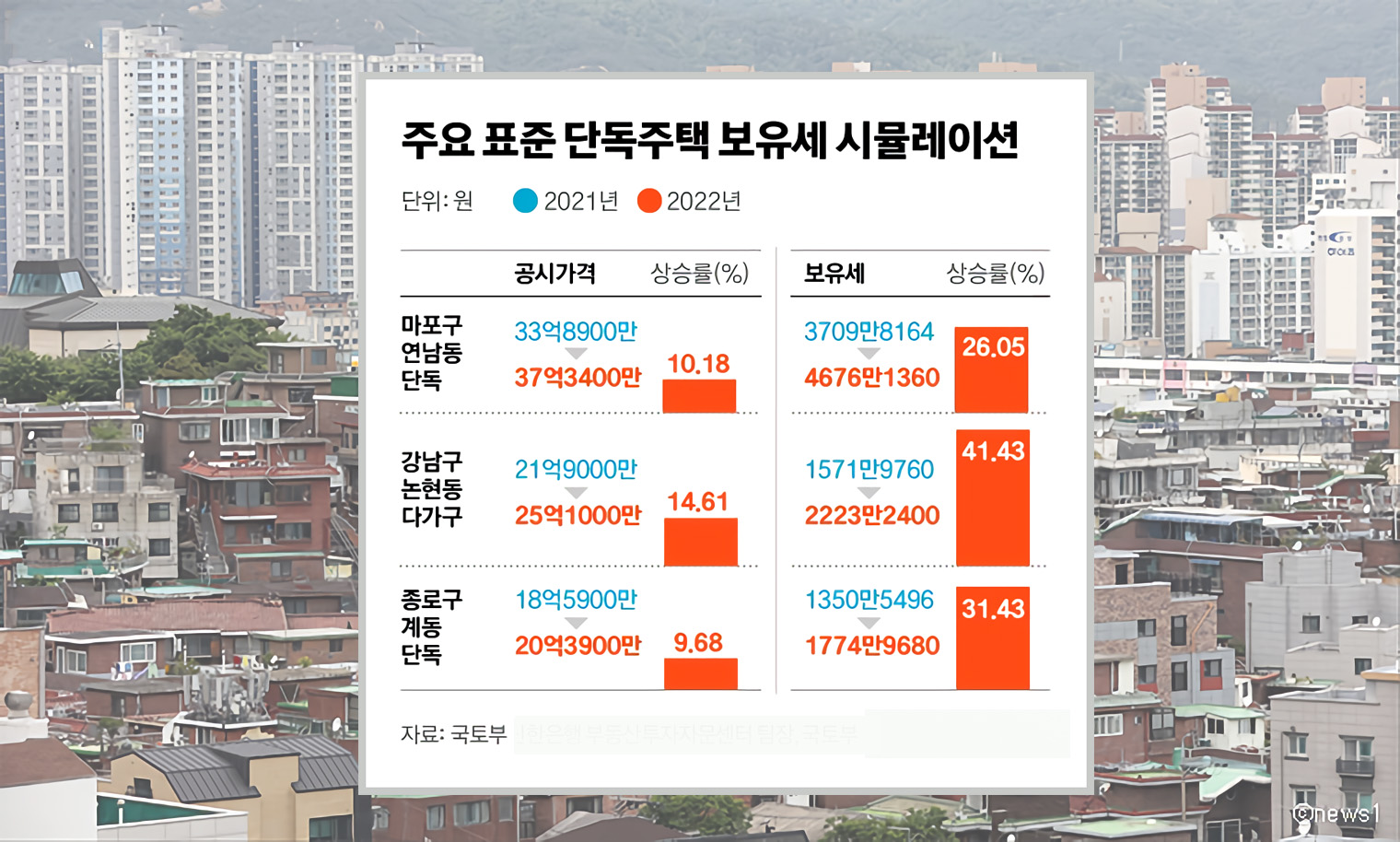 공시 가격이 10% 오른 경우 보유세는 약 26% 정도 상승한다. 공시 가격의 인상은 다주택자에겐 보유세 부담으로 세금 부담이 매우 커지게 된다.