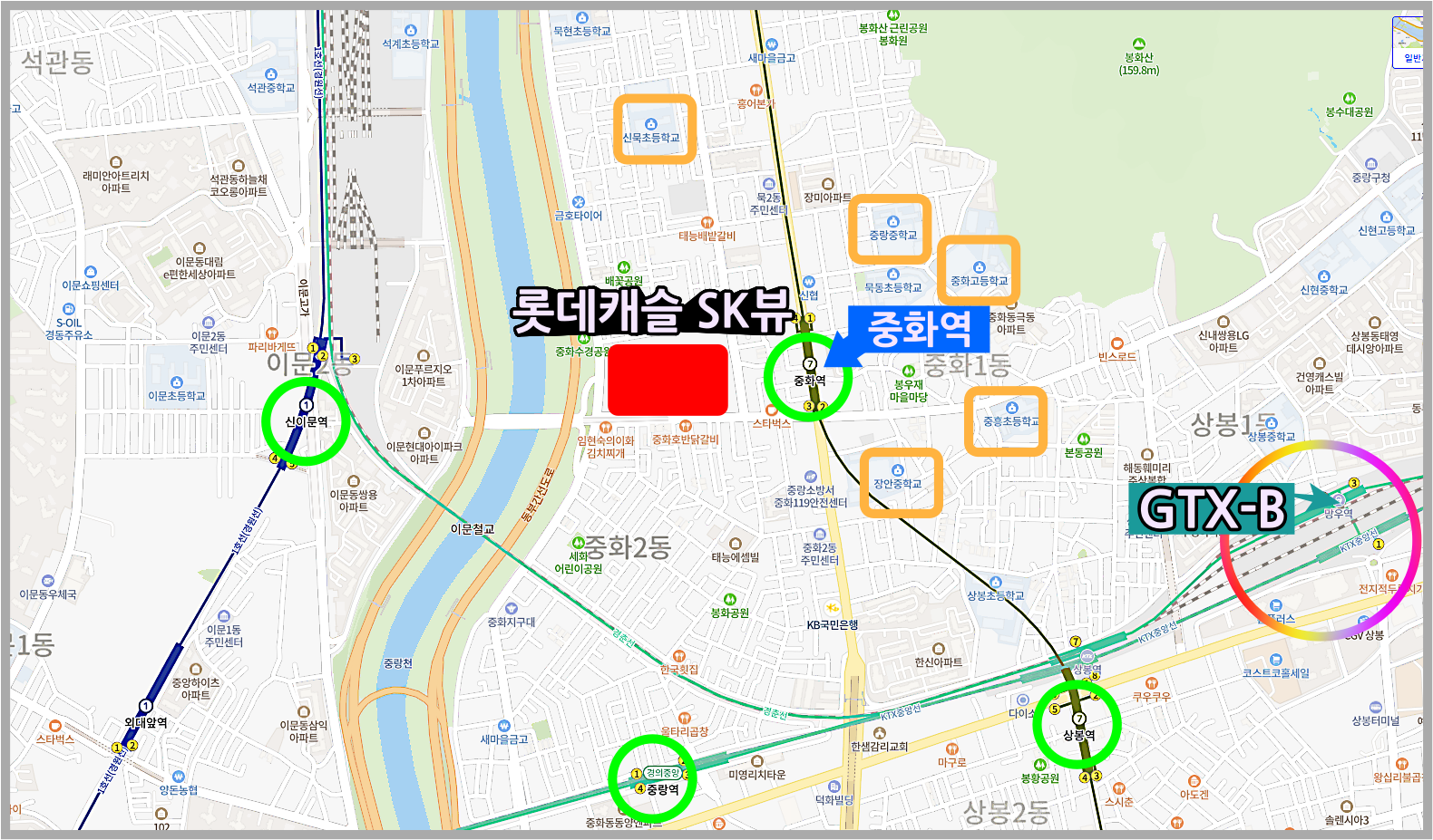서울특별시 중랑구 중화동 331-1번지 일원 중화동 롯데캐슬 SK View가 짓는 중화 1구역 재개발 아파트이다.