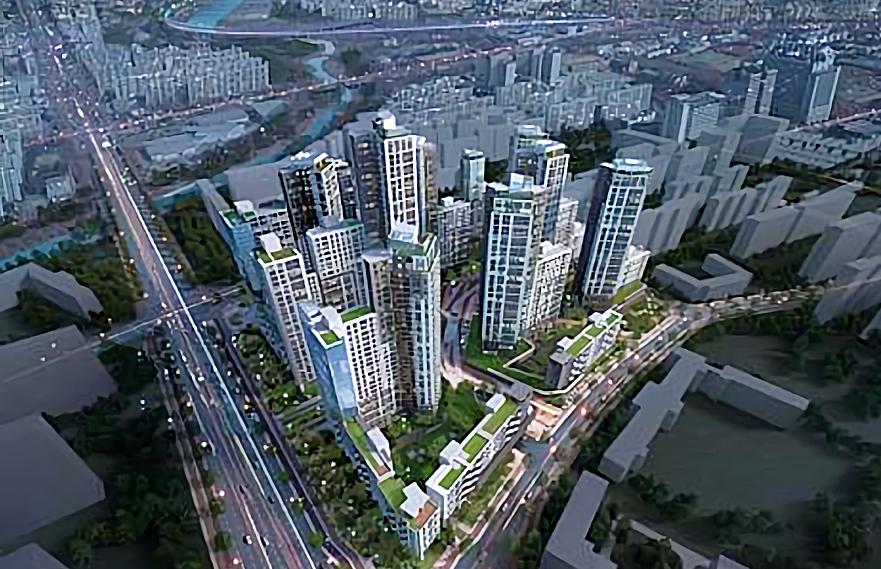 지하 2층에서 지상 35층 14개 동 약 1670세대가 들어서는 단지로 청계천에서 이 정도면 대단지 아파트다.