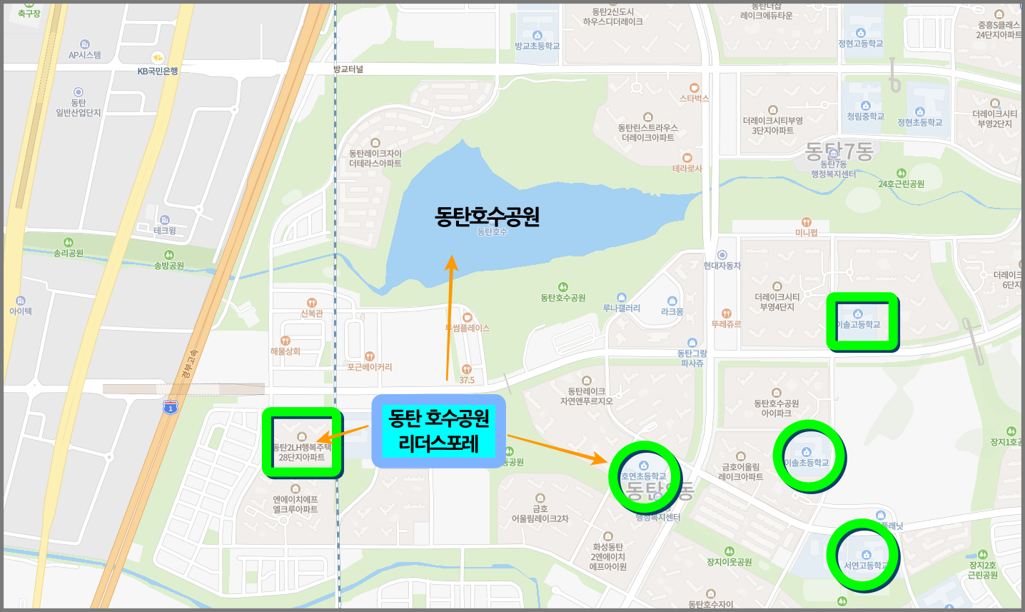 동탄 호수공원이 도보로 산책이 가능한 가까운 거리이며 주변에 카페 거리 등 생활 인프라가 매우 탄탄하게 조성이 되어 가고 있어서 불편함은 없을 듯합니다.