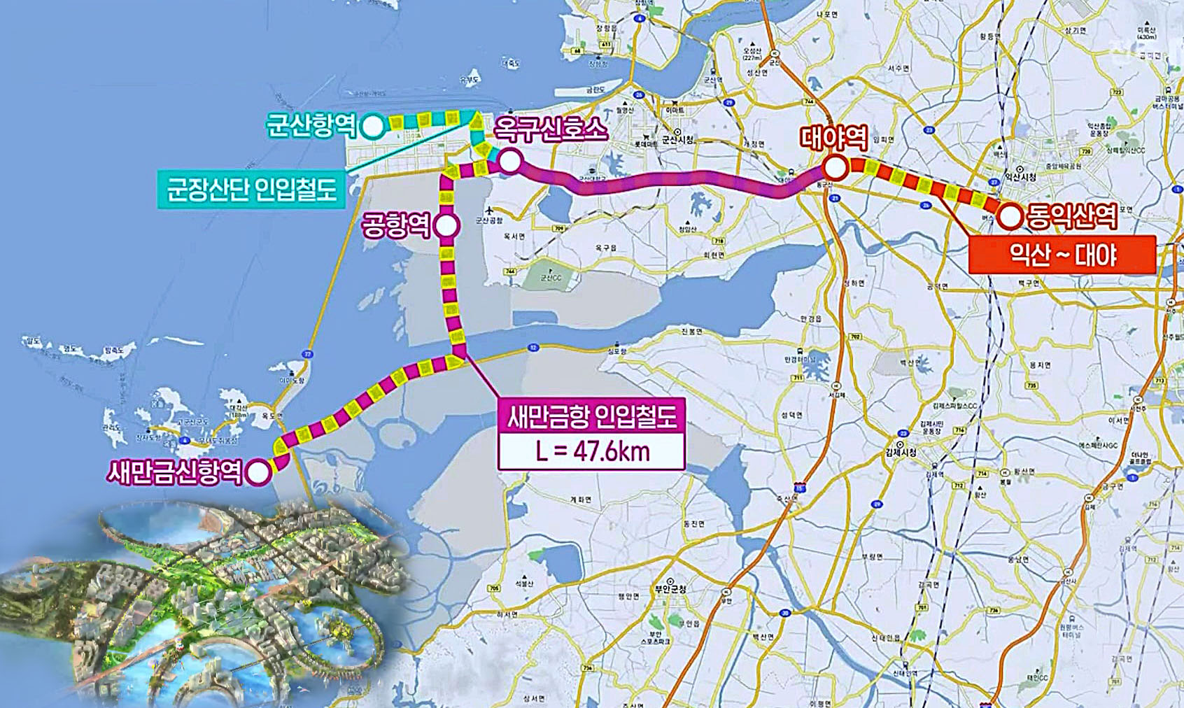 이로써 새만금은 항만 공항 철도 수송 계획은 완성됐다.