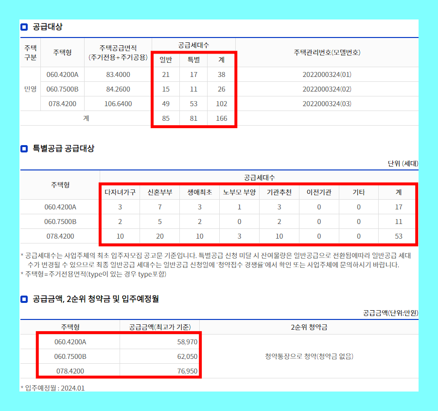 특별공급은 81세대 일반 공급 85세대로 구성되며 입주시기는 2024년 1월로 예정이 돼 있다.