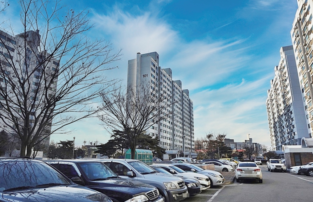 겉으로는 비슷한 아파트. 용적률은 큰 차이가 난다.