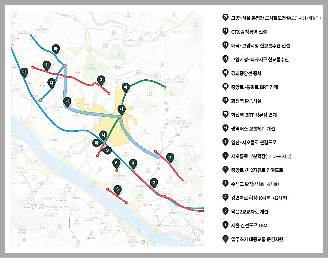 고양 창릉 신도시 교통망은 고양 -서울 은평 간 서남권을 연결하는 고양선과 도시철도와 강남권을 연결하는 GTX-A 두 노선이다.