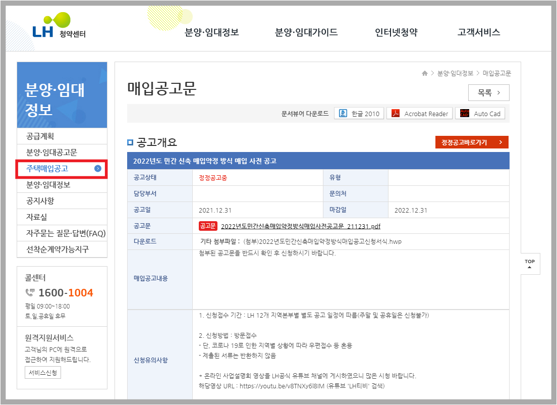 기타 자세한 사항은 LH 홈페이지 주택매입공고를 참고하면 상세한 내용을 확인 가능하다. [바로가기]